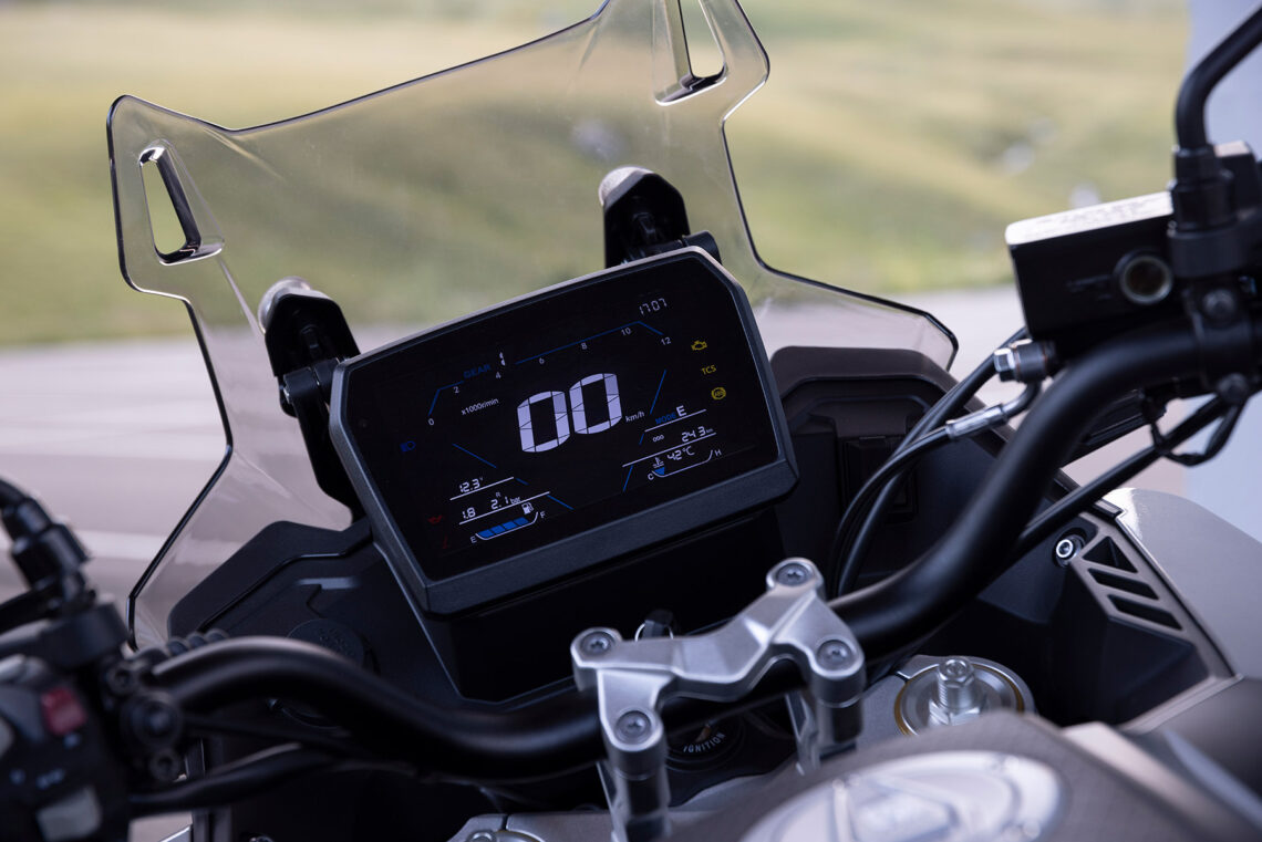 Otras características destacables pasan por su chasis perimetral de acero con subchasis desmontable y basculante de aluminio, suspensión Kayaba (horquilla invertida de 41 mm multirreg. con 15 cm de recorrido y monoamortiguador trasero con bieletas reg.precarga con 15.5 cm de recorrido), llantas de radios tubeless (delantera de 19 pulgadas) con sensor de presión de los neumáticos (Metzeler Tourance) y válvulas acodadas, iluminación full-LED con DRL y faros auxiliares o instrumentación LCD a color de 7" (incluye conectividad bluetooth y navegación por flechas).