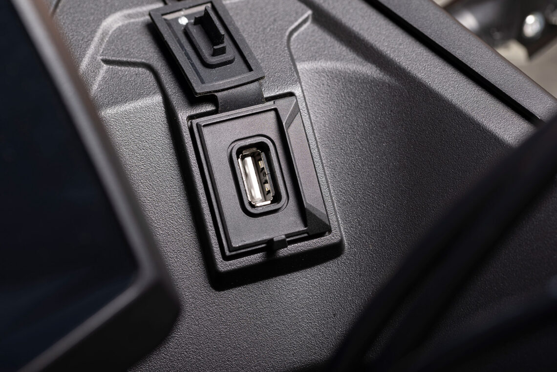 El equipamiento de serie se completa con depósito de gasolina de 16.5 l., doble toma de corriente (12V + USB, a ambos lados de la instrumentación), equipo de frenos Nissin (pinzas delanteras axiales) con discos lobulados, parabrisas corto ahumado (reg. manualmente en dos posiciones), manetas regulables, caballete central, parrilla trasera portabultos (incluye base para baúl) con asideros de pasajero integrados, pedal de freno dentado, varias protecciones (cubremanetas, defensas de carrocería, topes anti-caída, colectores, silenciador) y detalles en símil carbono. VOGE declara 190 kg en seco.