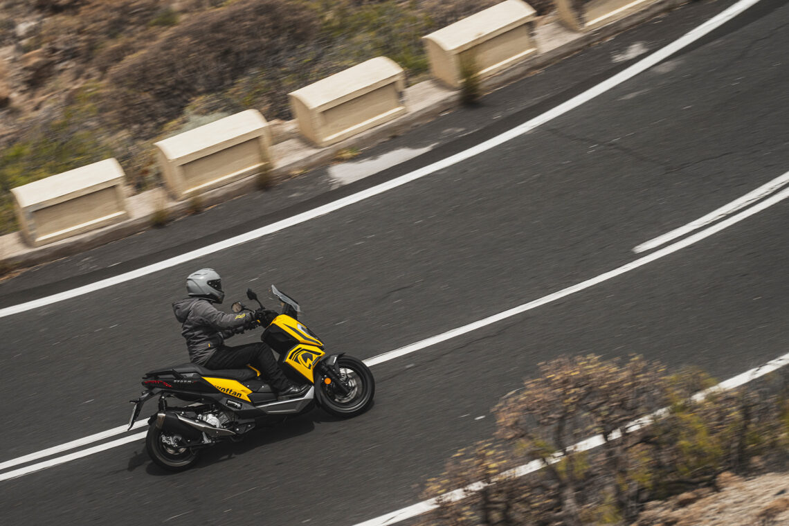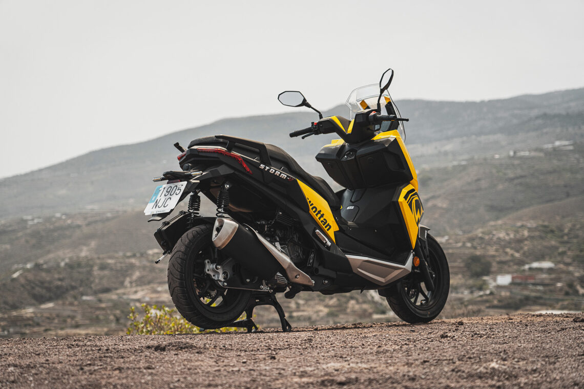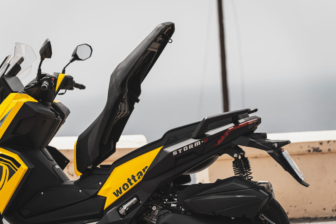 Lo primero en lo que nos dimos cuenta del Wottan Storm-V es su llamativa estética crossover, con tintes para off-road, pero sin reales capacidades para ello. Una vez en marcha, este scooter 125 nos sorprendió por su posición, equipamiento y prestaciones tanto en carretera como en ciudad, convirtiéndole en una opción atractiva dentro de un mercado muy amplio y competitivo.