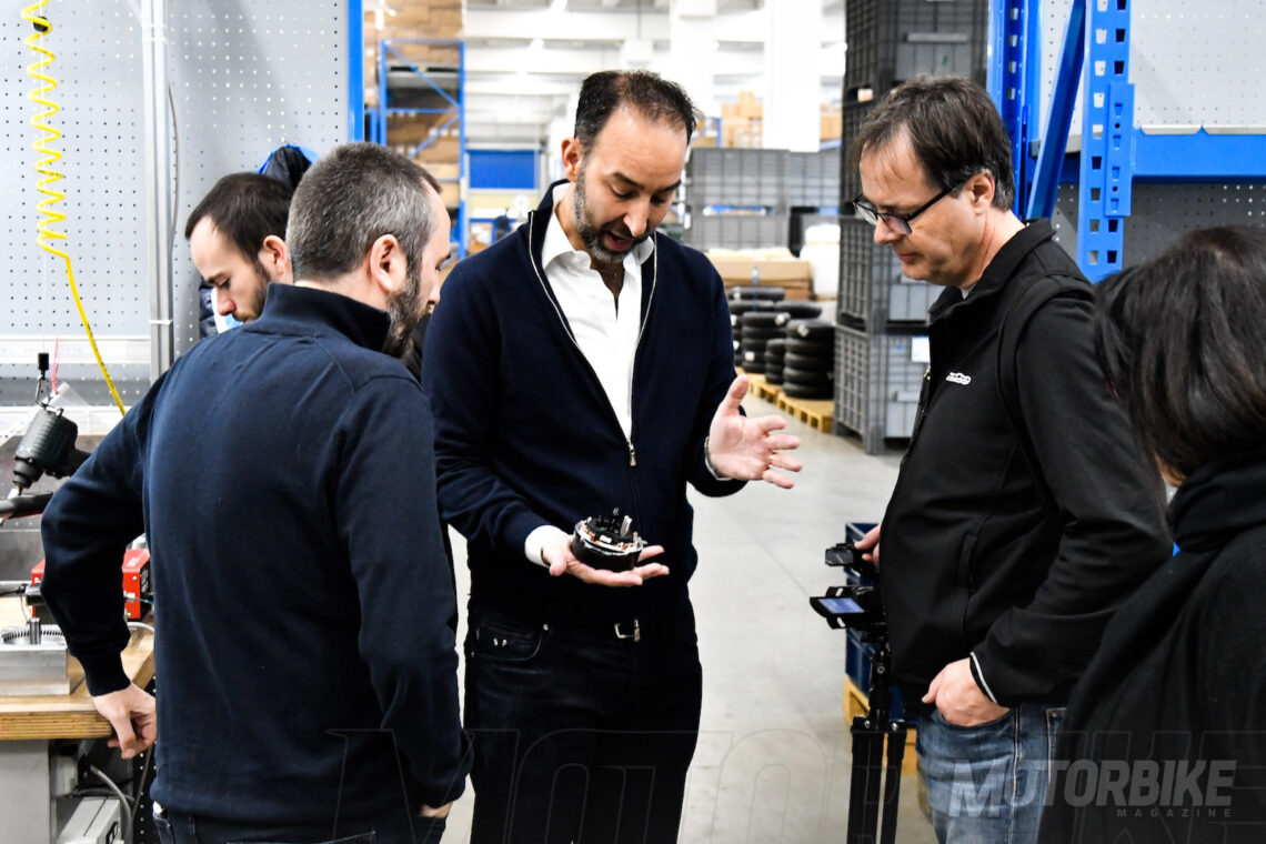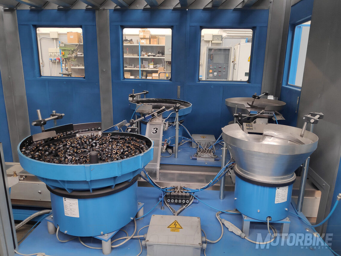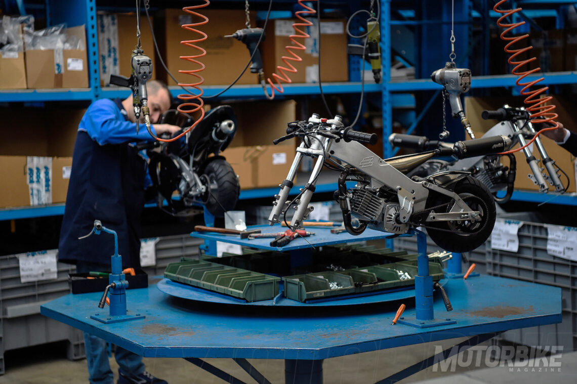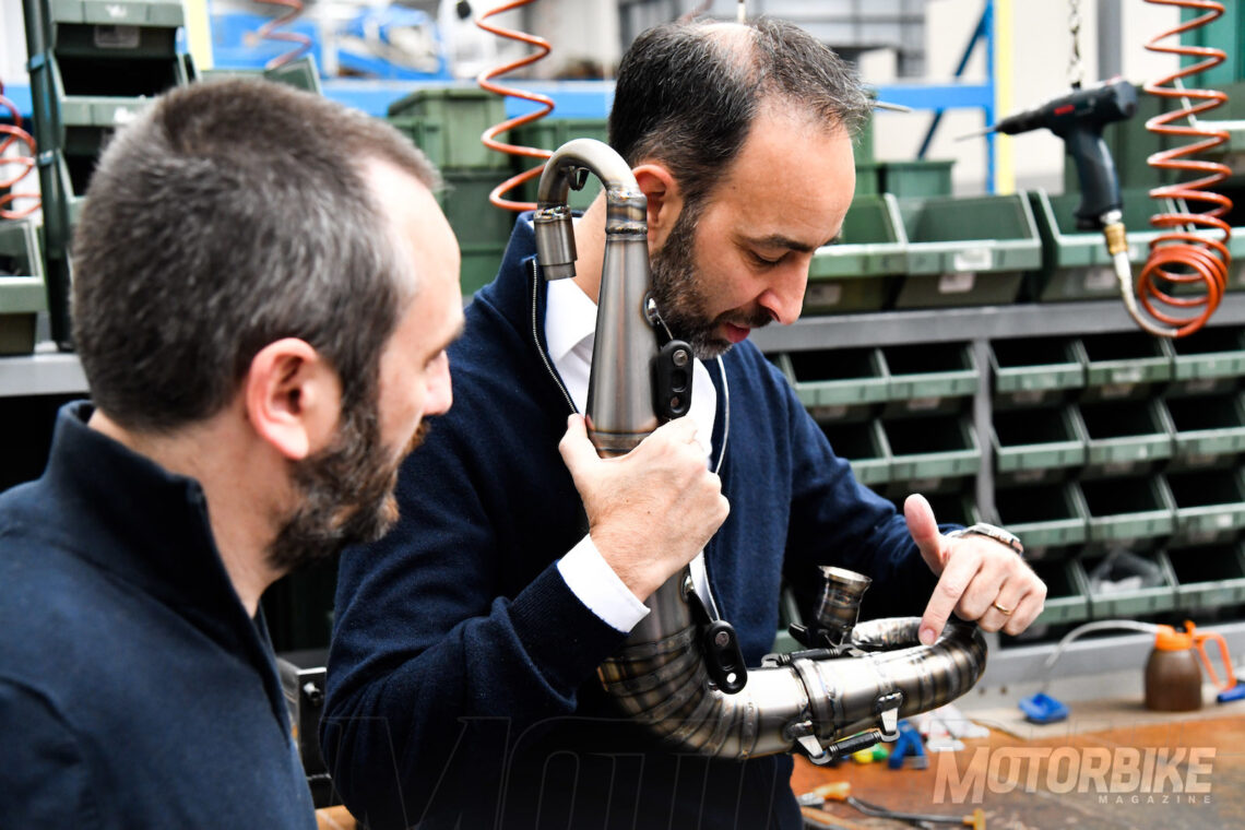 Es fascinante ver como en una zona ensamblan carburadores a mano, en otra supervisan hasta el rodillo más pequeño de un variador, mientras que en otro sector encuentras maquinarias CNC (control numérico) dando forma a los moldes de los cárteres de un motor, o como un equipo de ingenieros diseñan, estudian, fabrican y prueban un escape de titanio recién soldado. Es un pequeño paraíso de magia y pasión por la moto tradicional, que contrasta con la vanguardista tecnología eléctrica, también presente en la fábrica.