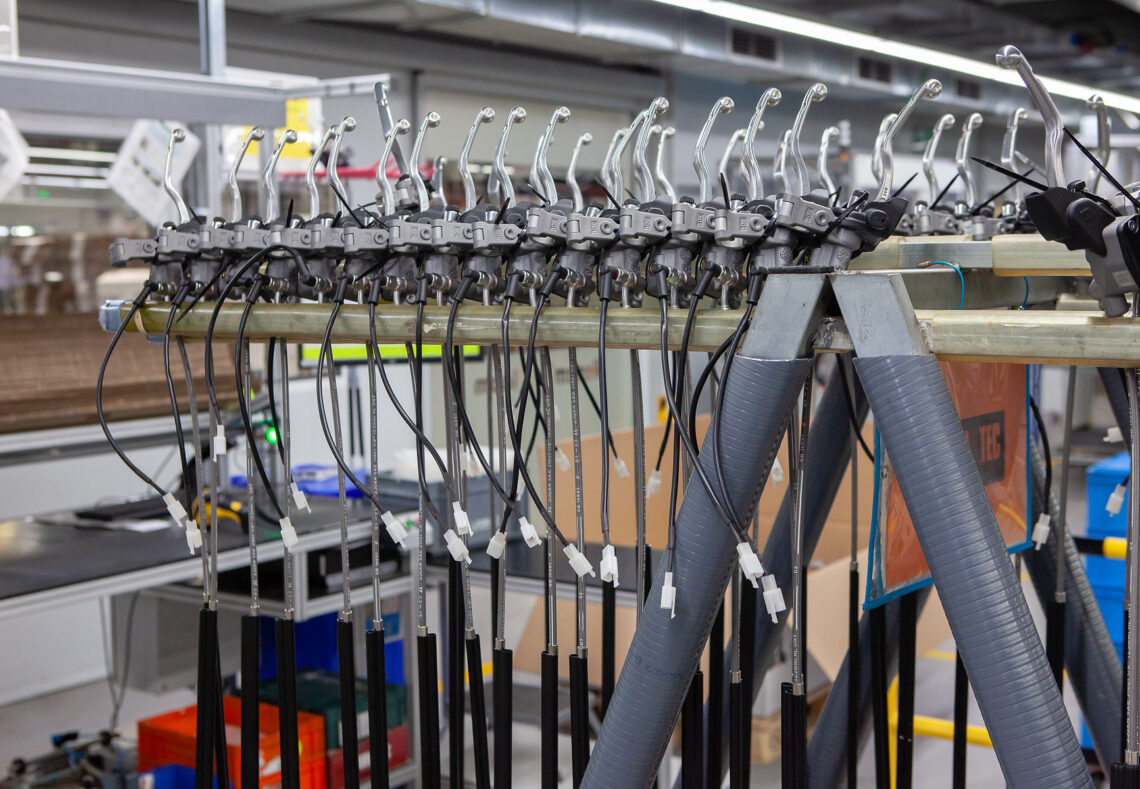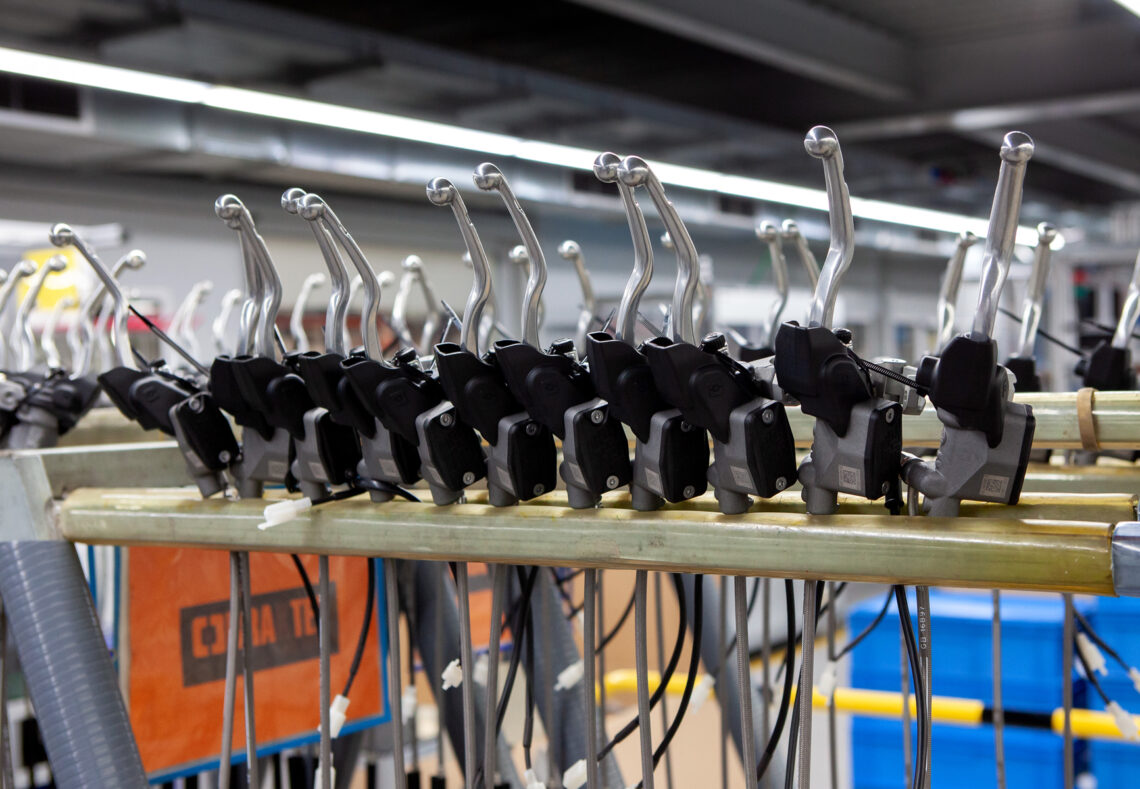 Otro de los aspectos que llamó mucho mi atención fue la trazabilidad de sus productos. El nivel de exigencia en la fabricación no solo atiende al producto hasta que se entrega, también son capaces de llevar un seguimiento a posteriori. Cada una de sus piezas son identificadas con un código QR, ya sea con una etiqueta o grabado en láser. Una identificación única que se va chequeando en cada estadio de su fabricación y con la que almacenan en sus sistemas diferentes informaciones de ese producto concreto. En un futuro, si recibieran una queja por ejemplo de una maneta defectuosa, a través de ese código puede saberse el modelo concreto, fecha, métricas de los diferentes controles que pasó e incluso los empleados encargados de su fabricación. Una forma muy eficaz de poder ayudar a los usuarios, de detectar un mínimo fallo que se haya podido escapar durante las revisiones y por supuesto de seguir mejorando sus productos con la información recabada a posteriori.