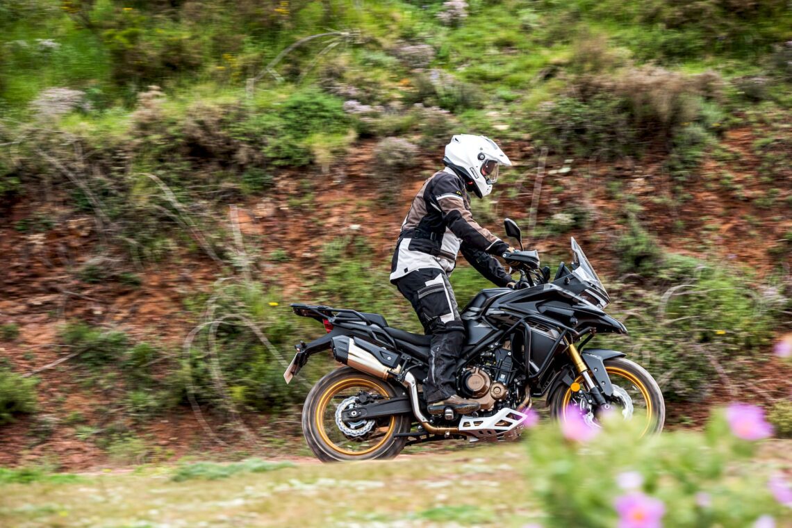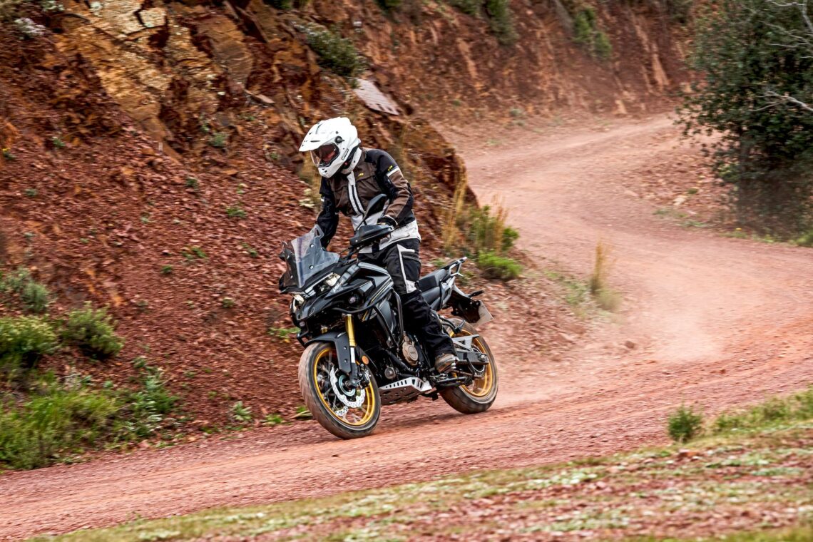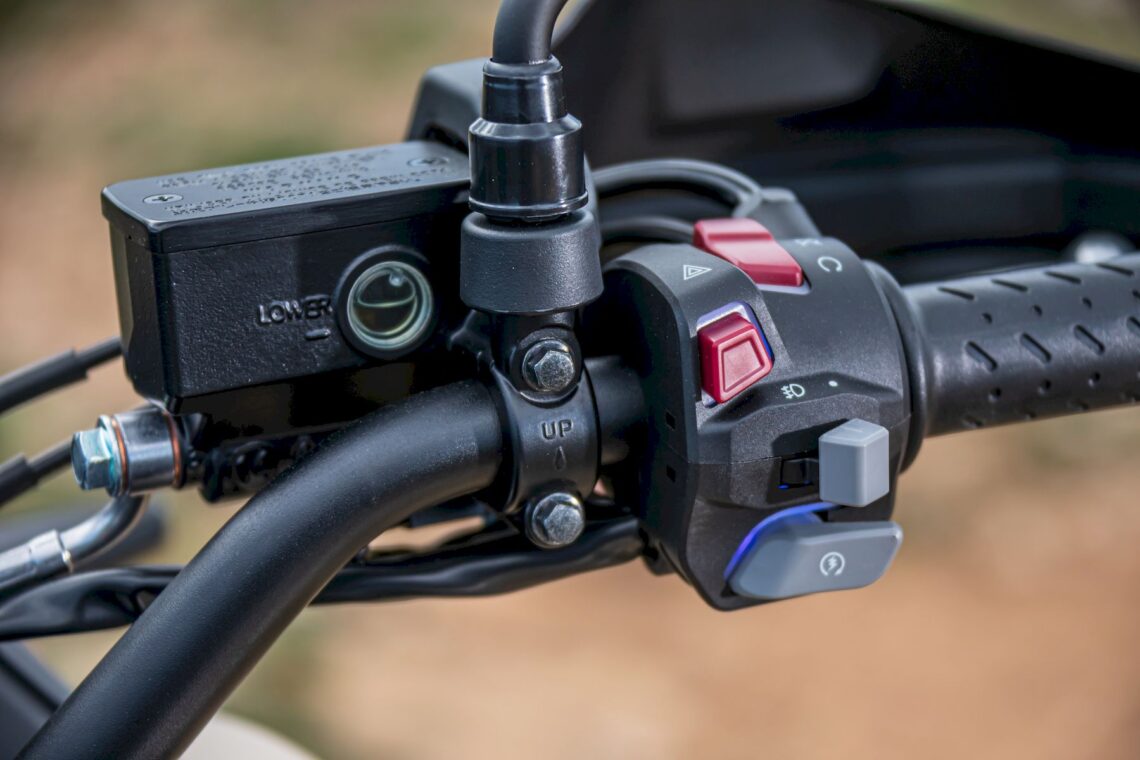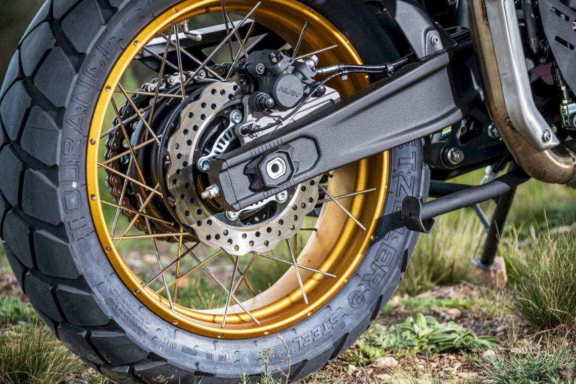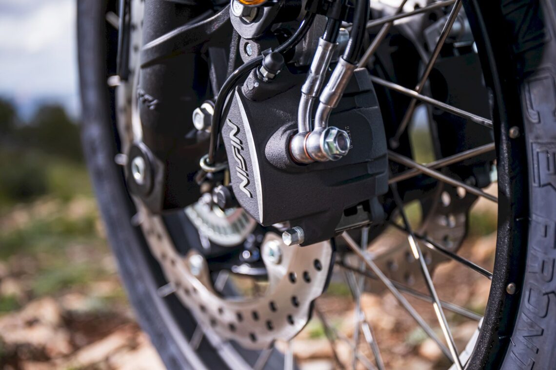 Desconectar ABS y control de tracción (botones independientes en la piña izquierda) es obligatorio para disfrutar por cualquier camino o sendero por el que te quieras adentrar. En tierra, la frenada es correcta y con buen tacto, sin la brusquedad de las pinzas radiales tan de moda últimamente, ideal para lograr ese feeling endurero que demandarán los usuarios más aventureros.