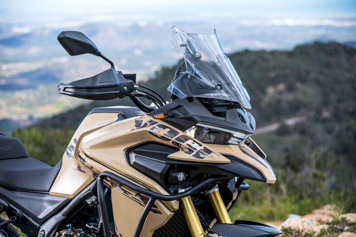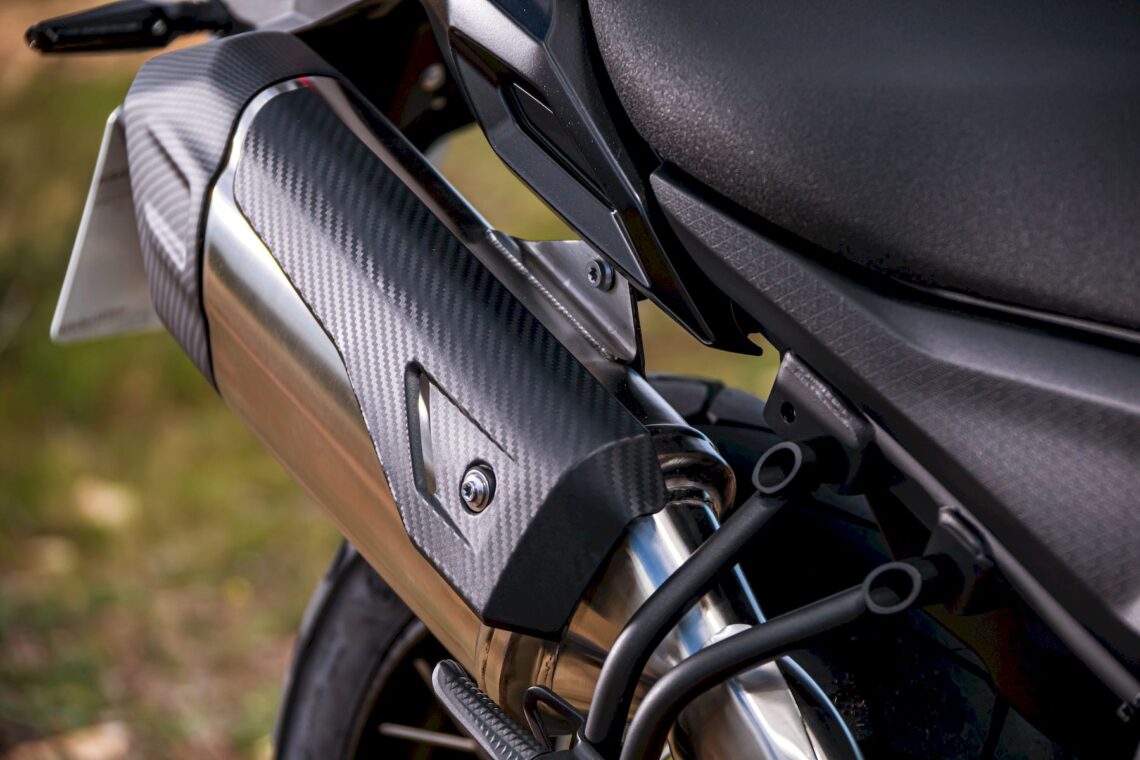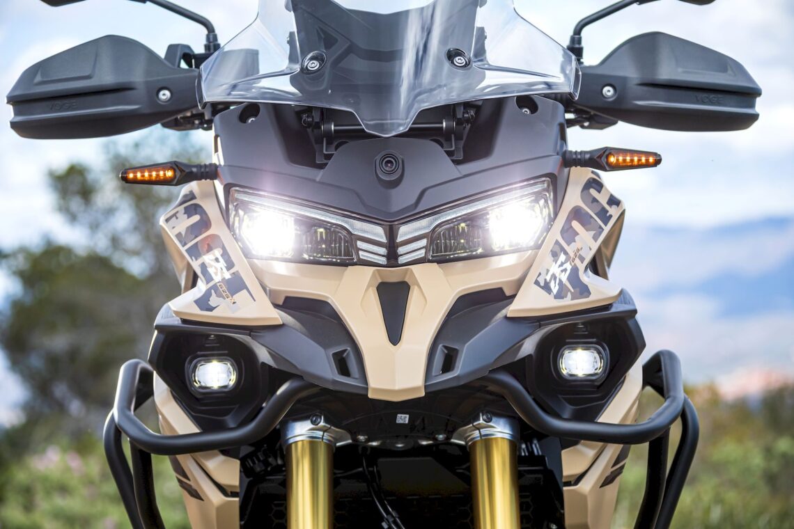 Otras características destacables pasan por su chasis perimetral de acero con subchasis desmontable y basculante de aluminio, suspensión multirregulable KYB (horquilla invertida de 41 mm con 174 mm de recorrido y monoamortiguador trasero con botella de gas separada, bieletas y 181 mm de recorrido), llantas de radios Henly tubeless (delantera de 19 pulgadas) con sensor de presión de los neumáticos (Metzeler Tourance) y válvulas acodadas, discos lobulados, iluminación full-LED con DRL, faros antiniebla, piñas retroiluminadas, intermitentes dinámicos, instrumentación LCD-IPS a color de 7" (incluye conectividad bluetooth y navegación por flechas) o cámara de vídeo frontal full-HD.