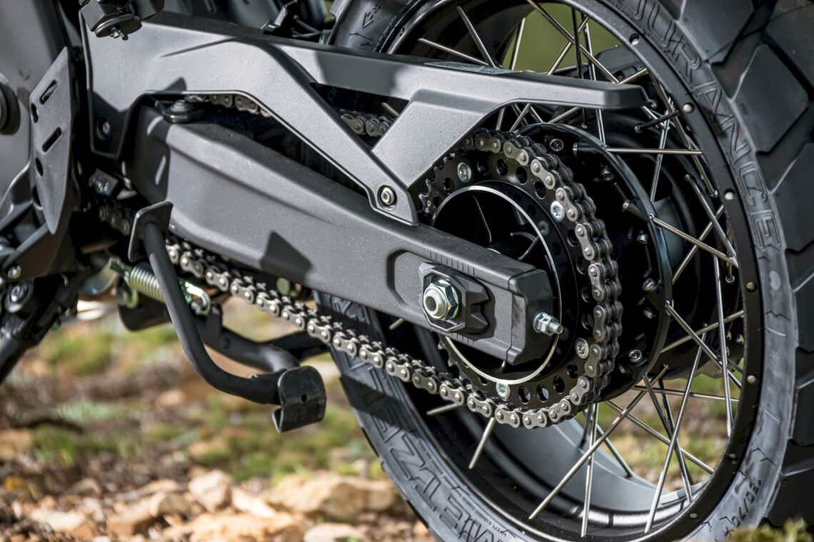 Corta encendido a 9.500 rpm, por lo que te sobrarán 2.500 rpm de display. Además del propulsor, la caja de cambio también acompaña, dejando claro el gran trabajo de Loncin para dar en el clavo de lo que demanda el segmento trail-medias. La diferente entrega de potencia entre los modos Estándar y Sport no es muy notable, si bien el más deportivo reacciona un poco antes a las insinuaciones del gas.
