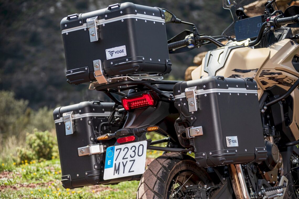 La VOGE 625DSX cuesta 6.592 € (incluye seguro gratuito y 5 años de garantía), es limitable para carnet A2 y está disponible en dos colores: marrón arena y negro mate. El kit de equipaje de aluminio (maletas laterales -35+28 l.- y top case -36 l.-), fabricado por los especialistas de Loboo, cuesta 998 €, una opción imprescindible para los más ruteros.