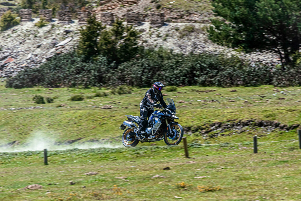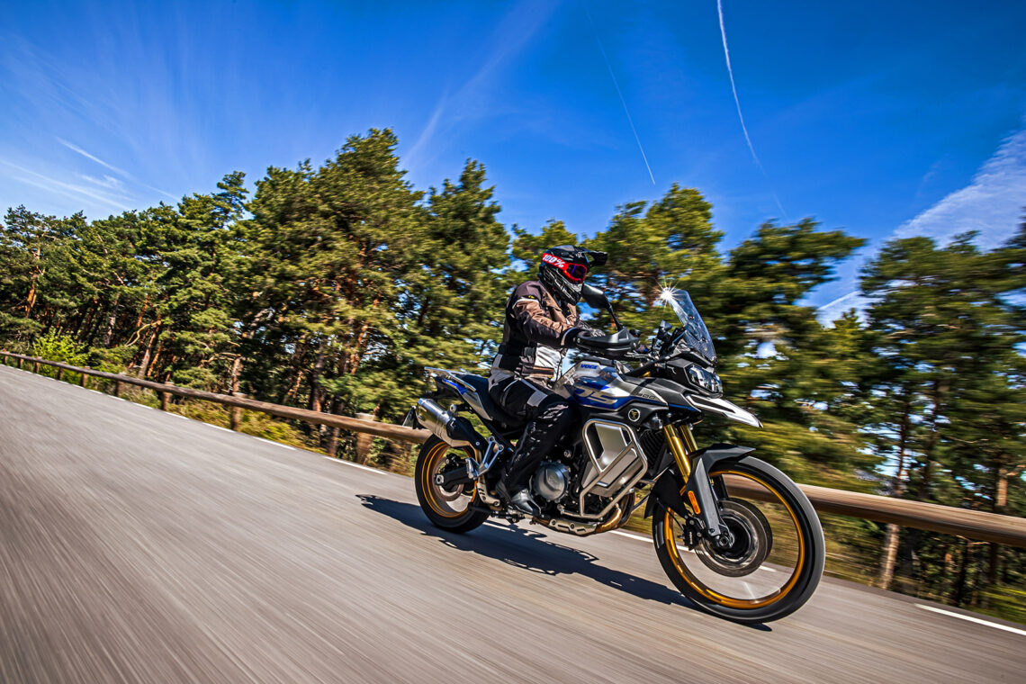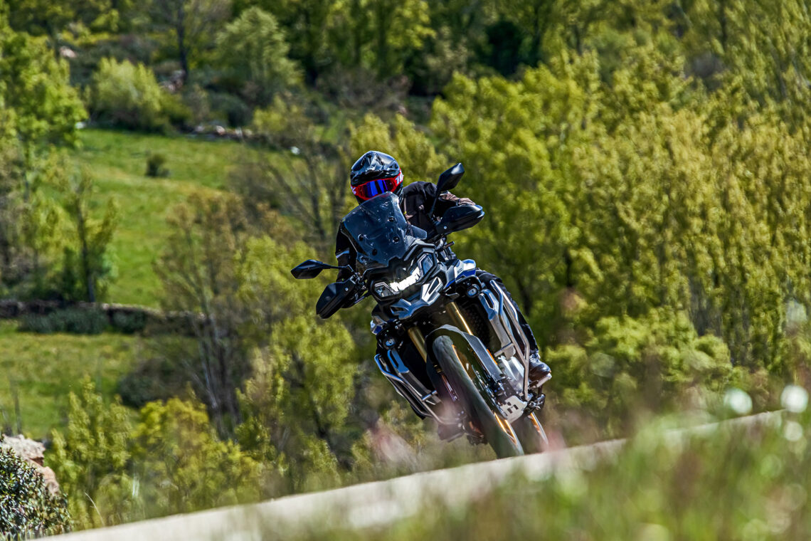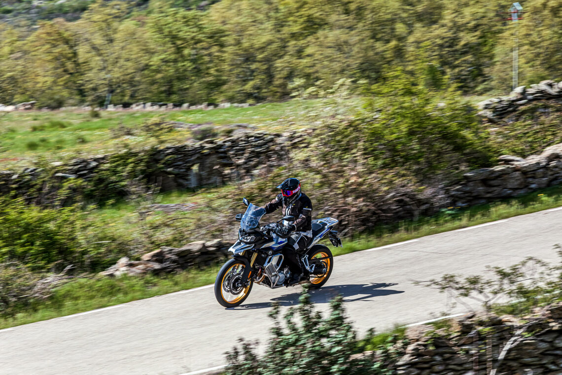En lo que respecta al motor, el tacto del bicilíndrico de 895 cc me recuerda más al de la BMW F 850 GS que al de la BMW F 900 GS, tanto por desarrollo (largo) como por potencia (10 CV menos). Cada uno de los modos de conducción (los seleccionas desde el botón MODE de la piña derecha) te otorga una entrega de potencia más/menos directa a las insinuaciones del gas. En Sport el tacto de gas es algo seco, quizá más de puesta a punto del acelerador electrónico que otra cosa, por lo que prefiero rodar todo el rato en Road. Con el tacto del cambio sucede lo mismo, algo duro, quizá debido a la falta de rodaje de nuestra unidad, por lo que prefiero usar la maneta como en una moto convencional en lugar del quickshifter. El consumo medio durante nuestra prueba fue de 5,5 l./100 km, lo que te otorgará una autonomía de unos 300 km.