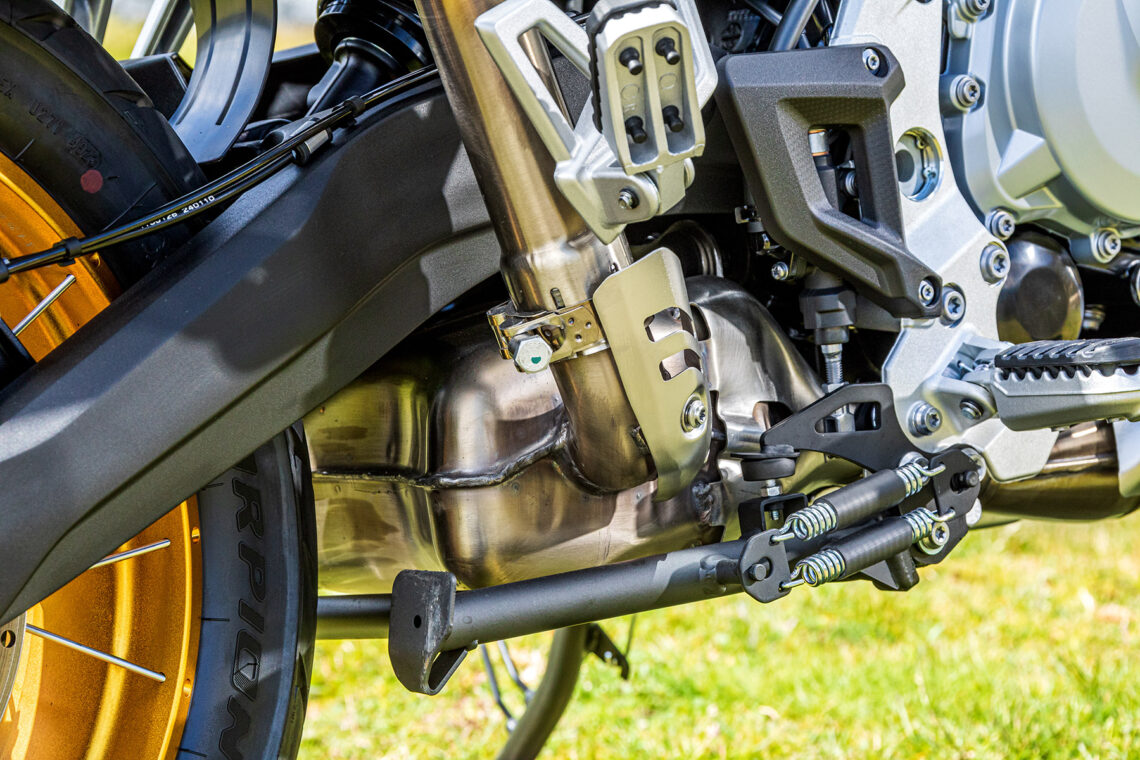 Si pretendes practicar una conducción hard-trail saldrán a relucir sus limitaciones. Peso elevado (casi 240 kg con todos los llenos), poco recorrido de suspensión (menos de 20 cm), torretas de manillar bajas para ir de pie, distancia libre al suelo de 190 mm y asiento muy hundido juegan en su contra, si bien el parabrisas corto, las estriberas dentadas (goma extraíble), las protecciones de serie o el subchasis desmontable se agradecen para off-road.