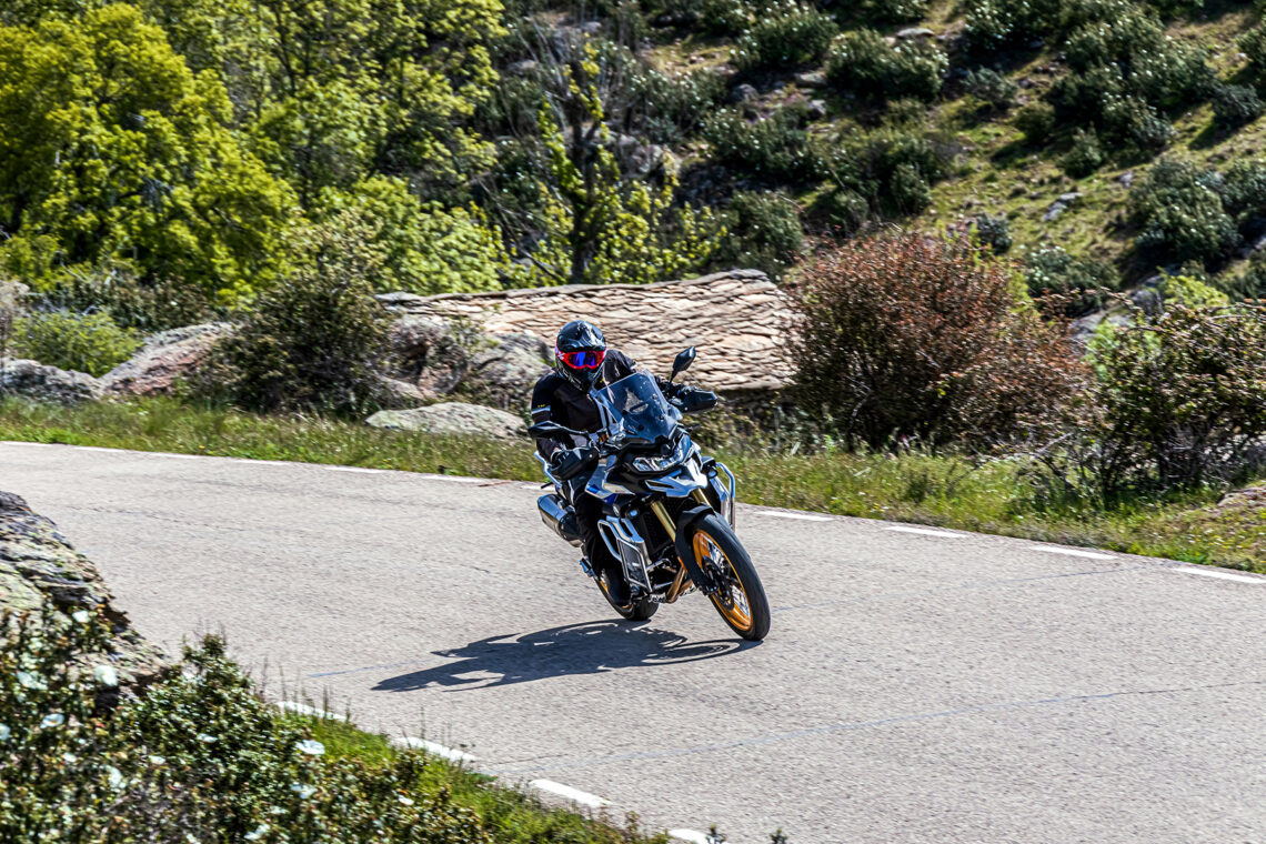 Aunque su llanta delantera de 21 pulgadas pueda indicar lo contrario, la VOGE 900DSX es una trail eminentemente asfáltica, con la que puedes afrontar algunos caminos de tierra fáciles cómodamente y sin complejos.