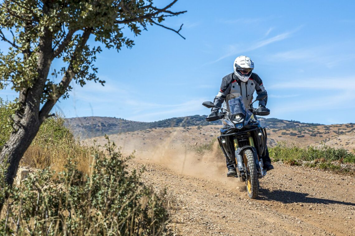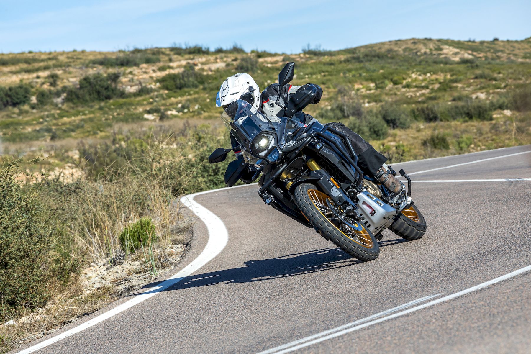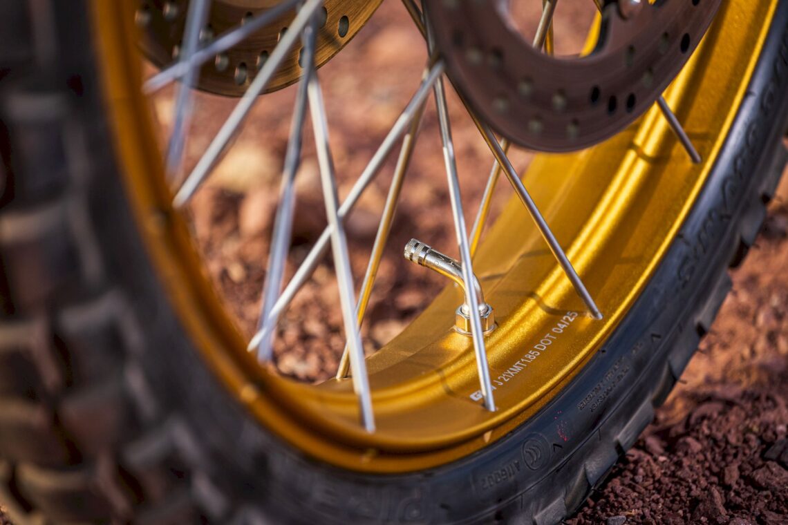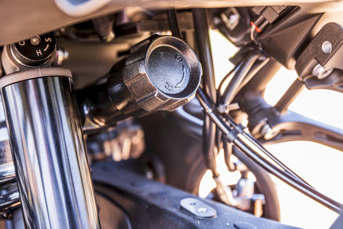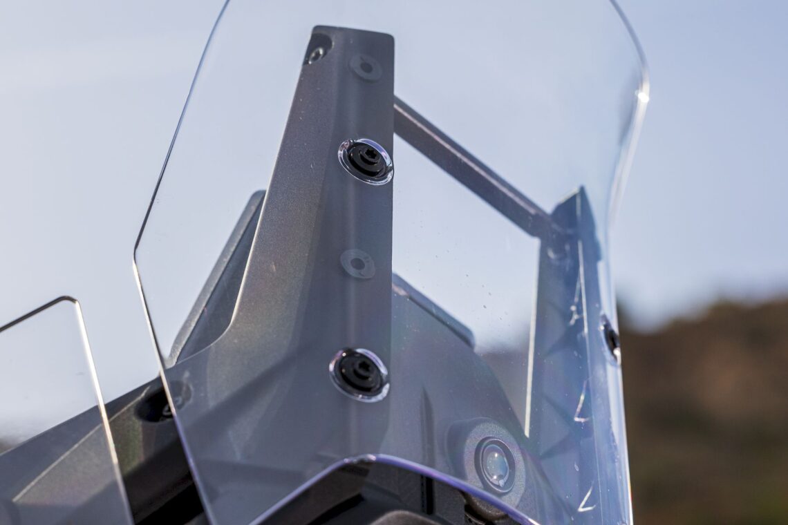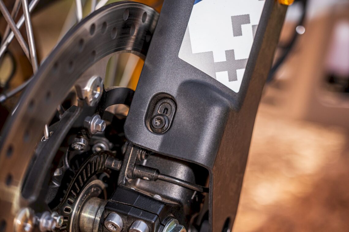 Otras características destacables pasan por su chasis perimetral de acero (subchasis soldado) y basculante de aluminio, suspensión multirregulable KYB (horquilla invertida de 43 mm con 20 cm de recorrido y monoamortiguador trasero con botella de gas separada, bieletas, pomo de precarga y 19 cm de recorrido), amortiguador de dirección rotativo (regulable), llantas de radios Henly tubeless con medida enduro (delantera de 21" y trasera de 18") con sensor de presión de neumáticos (Pirelli Scorpion Rally STR) y válvulas acodadas. El equipo de frenos está firmado por Nissin (pinzas delanteras radiales de 4 pistones) y tiene latiguillos metálicos (bajan separados).