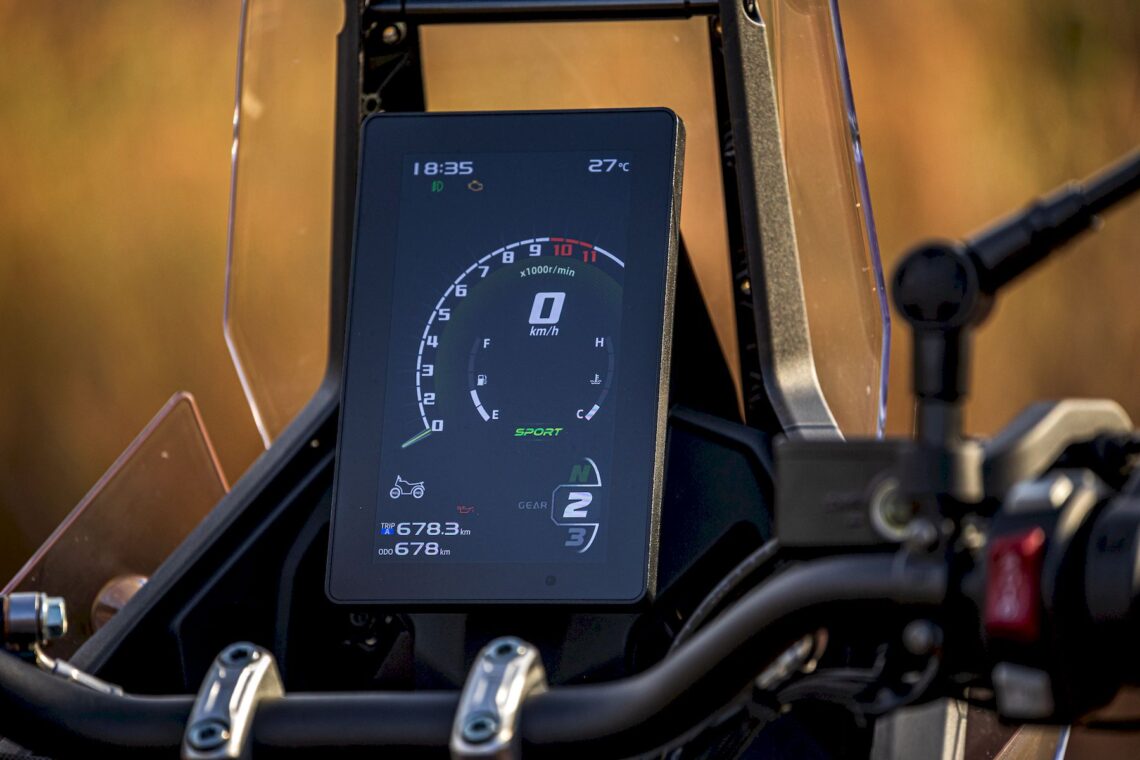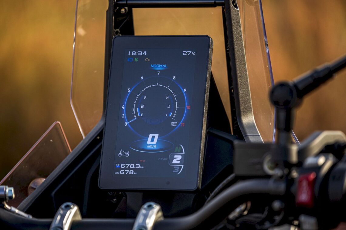 Al cortar gas notas que hay bastante retención, pues el freno motor es notable, pero el tacto de acelerador es algo seco a baja velocidad cuando buscas dar ese toque progresivo en plena inclinación, por ejemplo. No llega a ser tan incómodo como en la Zontes 703F, pero si vas "repelando" un poco se nota. Como siempre, el consumo real en uso mixto es superior al declarado y, en nuestra prueba, marcamos una media de 6.3 l./100 km, es decir, unos 350-400 km de autonomía, dependiendo de las condiciones de uso (peso, conducción, superficie, etc).