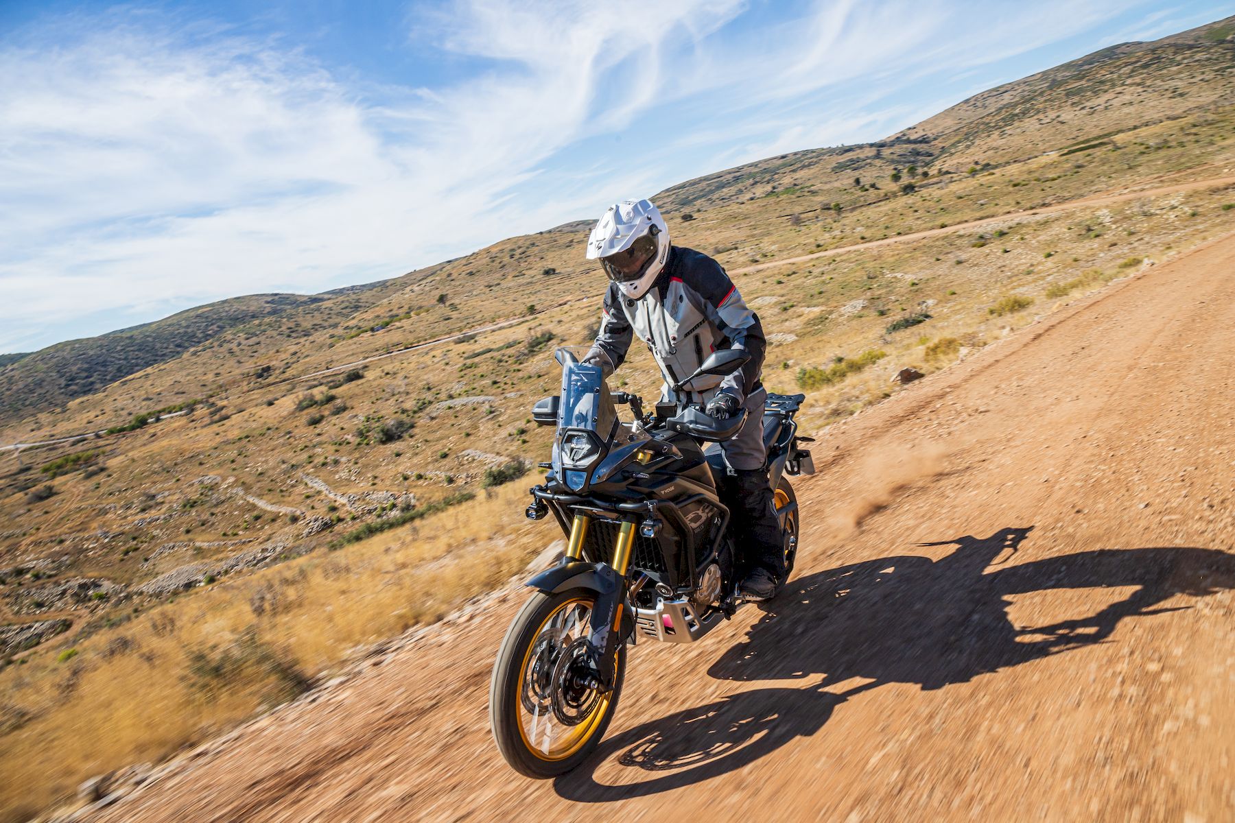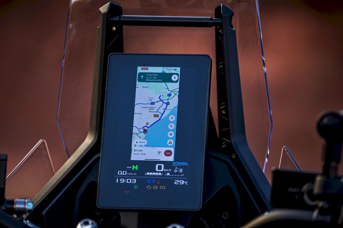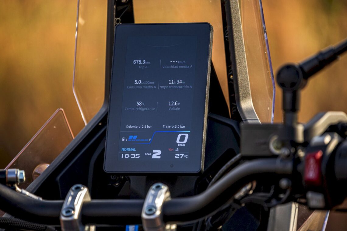 En marcha, agradeces ese talante más tranquilo del motor, igualmente "disfrutón" en modo Sport tras la desconexión previa del control de tracción y el ABS (mejor en las dos ruedas si no quieres irte largo frenando en un terreno con mucho agarre). Tampoco puedes "liarte" demasiado con secciones técnicas, pues su contenido recorrido de suspensión no te permitirá muchos excesos en zonas complicadas. El diseño del asiento facilita todos tus movimientos al ir de pie, sin perder confort sentado, gracias a los 7 cm de espumado.