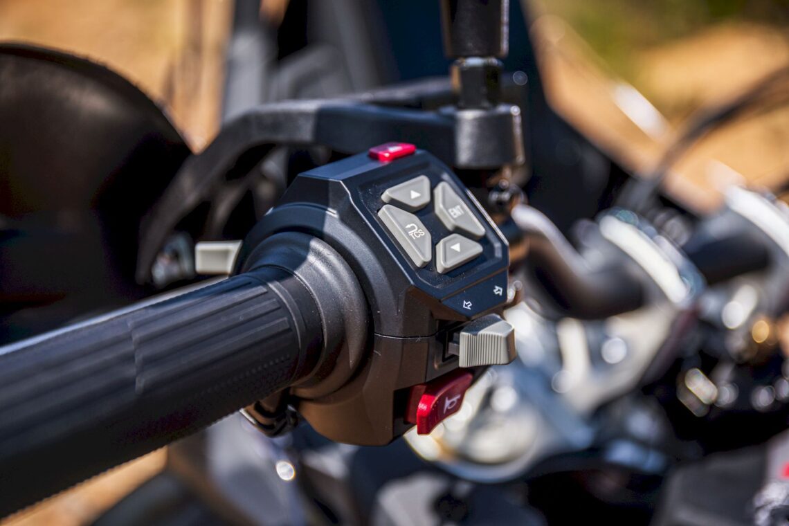 Cuatro puntos a su favor pasan por el excelente tacto del embrague hidráulico (debería ser obligatorio en otras motos el doble de caras), el amortiguador de dirección rotativo, el buen funcionamiento de la caja de cambio (pese a no tener quickshifter) y el correcto tacto-potencia de las pinzas delanteras Nissin. Algo que no me esperaba en uso 100% asfáltico es la elevada intervención del control de tracción, demasiado intrusivo incluso si no realizas una conducción deportiva, lo que te obliga a desconectar el sistema a poco que el sistema "capa" la moto demasiado pronto.