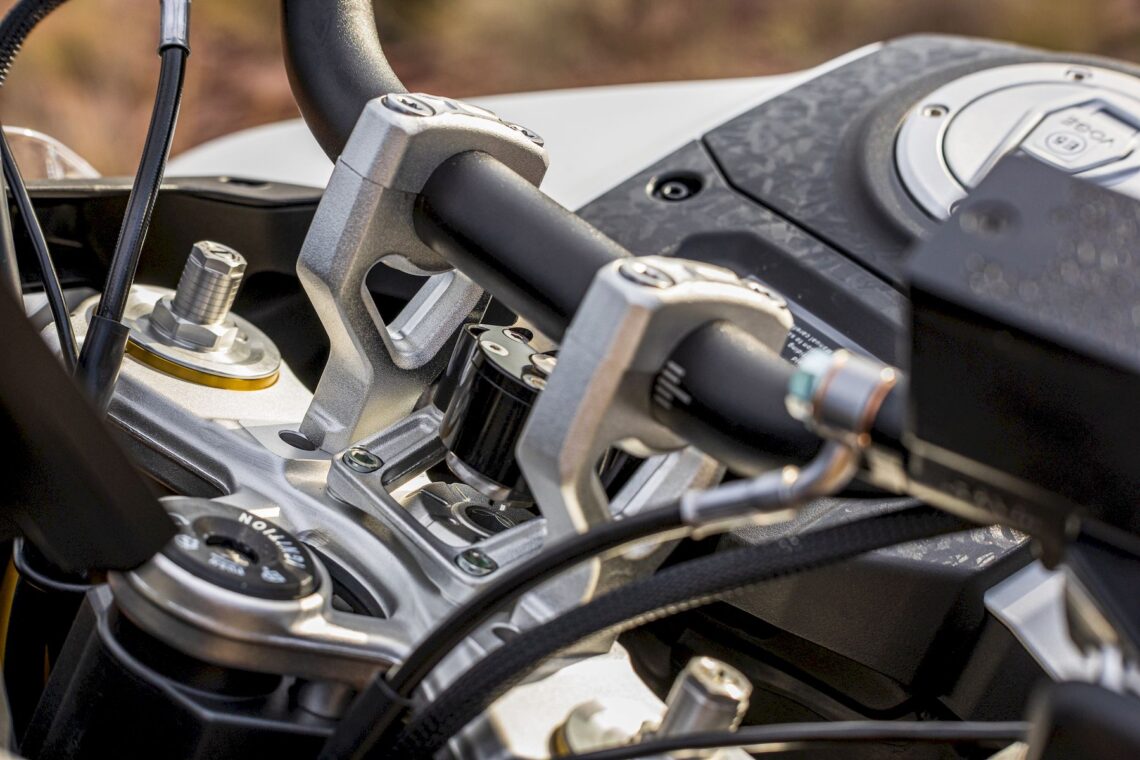 Aún así, hay cuatro aspectos que me resultan contradictorios en una moto de enfoque más campero: ¿por qué 24 litros de depósito, recorrido 20/19 cm, subchasis soldado y pinzas delanteras radiales, cuando la 900DSX 'road touring' tiene 17 litros, recorrido 20/20 cm, subchasis desmontable y pinzas axiales? El equilibrio carretera-campo siempre es difícil de lograr, pero...
