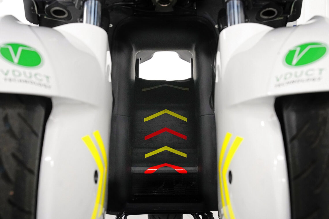 Al aumentar la velocidad, entra en juego el interesantísimo diseño del conducto patentado por la marca, reduciendo la resistencia del aire, que pasa por el conducto. El guardabarros ayuda a conducir el aire por el agujero central reduciendo así la resistencia del frontal. Esto se traduce en una menor necesidad de potencia para ir a la misma velocidad, es decir, en un consumo considerablemente menor.