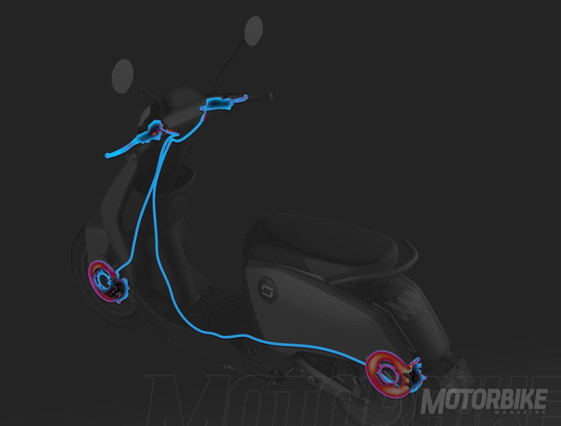 Cuenta con frenos de disco en ambas ruedas y un sistema de frenado EBS que además de reducir la distancia de frenado, aprovecha esa energía liberada para recargar la batería. Precisamente la batería es uno de los aspectos destacados de este modelo, ya que pesa 10 kilos y tiene una vida útil en torno a 600 ciclos de carga, con una autonomía de hasta 120 kilómetros, con un tiempo de recarga de hasta 7 horas.