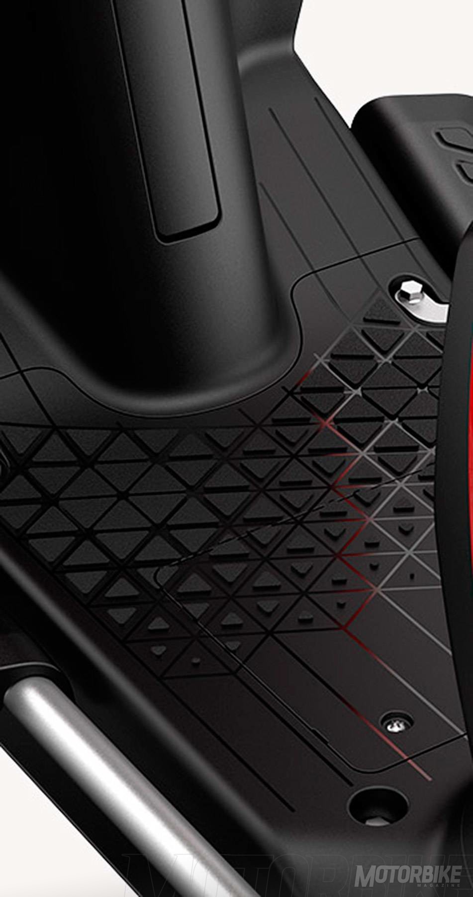Una de las cosas que más llama la atención, es su cámara frontal con un angular de 138 grados con resolución FullHD. No, no es para hacer fotos o vídeos durante tu ruta, sino para recuperar imágenes en caso de accidente, ya que la moto tiene un sensor de fuerzas G y que en caso de impacto o colisión, activa un modo de seguridad que guarda la grabación de todo lo que ha pasado y lo envía a tu teléfono móvil.