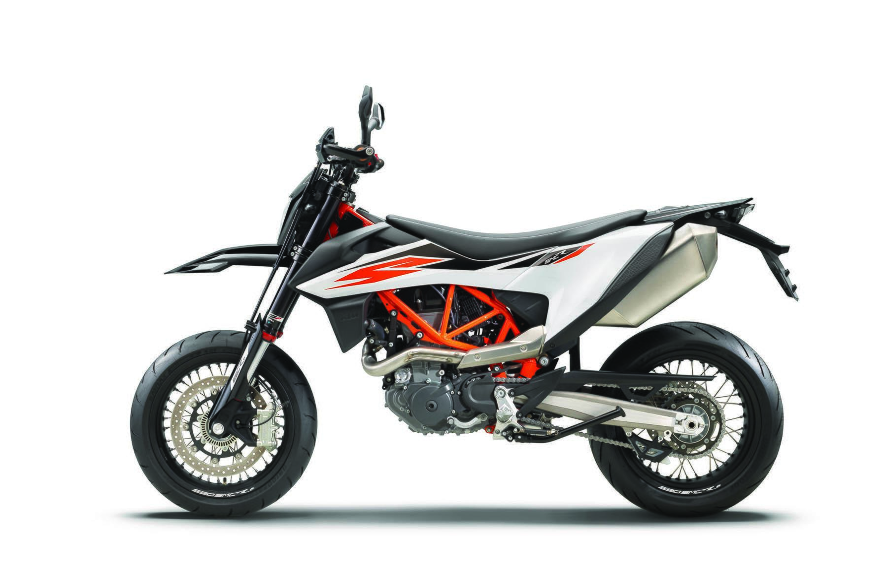 Se trata de la Supermoto de KTM, que sigue ofreciendo el motor monocilíndrico más potente de la historia (en motos de producción). Es una moto gamberra, con un claro enfoque radical, y que busca las máximas experiencias y sensaciones. La ergonomía y la carrocería han sido completamente renovadas. Cuenta con suspensiones APEX de la marca WP completamente regulables.