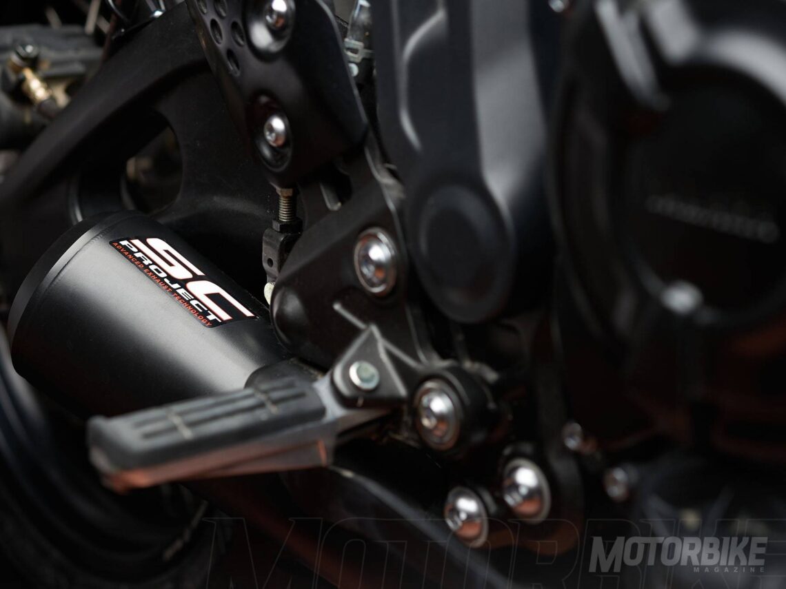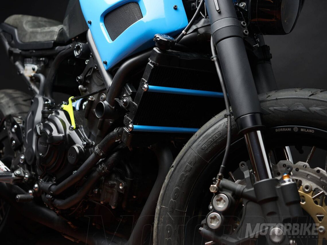El escape es completamente nuevo firmado por SC Project. La altura se ha elevado 15 mm con una nueva amortiguación Gears Racing y un nuevo subchasis atornillado que permite acceder a las herramientas y a la batería. Se ha instalado en esta "Otokomae" un nuevo asiento de cuero de alta calidad mientras que los intermitentes se integran en la horquilla. El color azul y amarillo forman parte de los tonos tradicionales del departamento de competición de Yamaha, pero ahora con un diseño moderno e inconfundible.