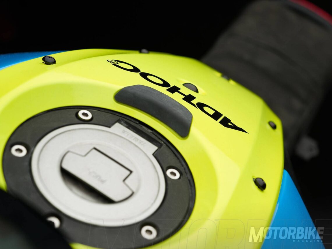 La XSR700 de Ad Hoc cuenta con partes de otras Yamaha en la parte delantera, como la tija y el manillar de la MT-09, la horquilla de la YZF-R6, los frenos de disco, la bombra de freno y el embrague de la R6 y el faro y el soporte de de la MT-01. Las llantas Borrani con neumáticos Michelin le dan una interesante personalidad mientras que el depósito original destaca por la cubierta personalizada con cuatro módulos. El radiador se ha lacado en negro combinando con el bloque motor mientras que se ha instalado un filtro del aire deportivo que libera de espacio la sección central de la moto.