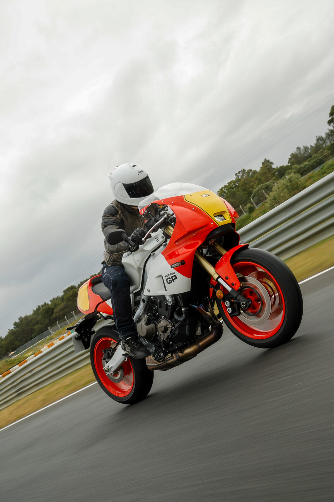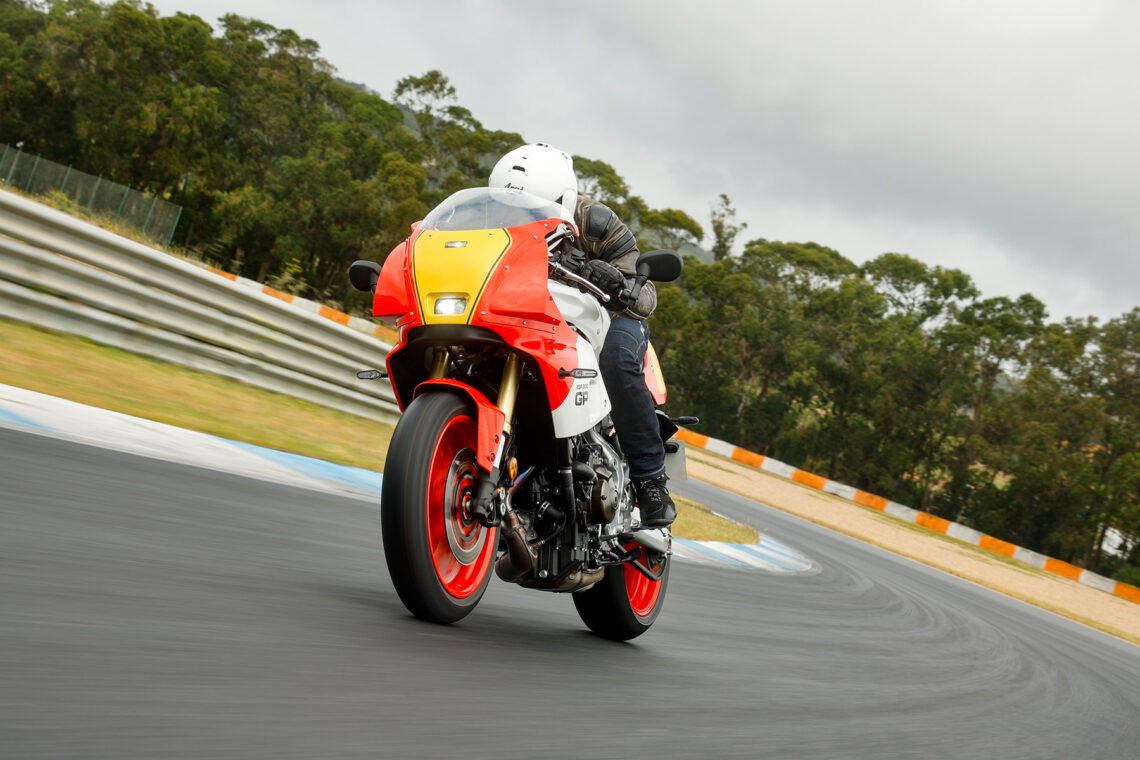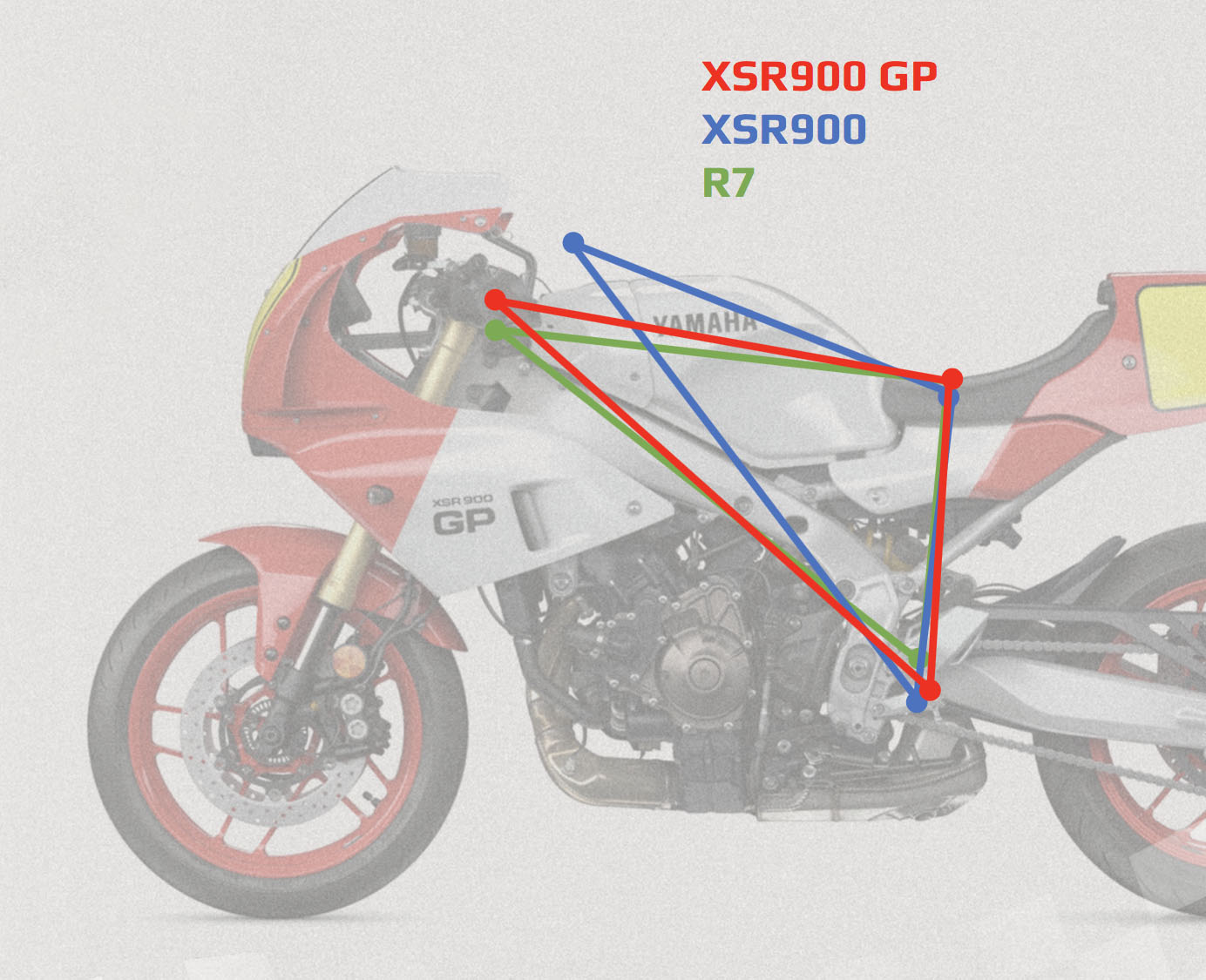 Ahora, con la Yamaha XSR900 GP, nos encontramos con una "versión de una versión". No obstante la XSR900 GP no es únicamente "una XSR900 con carenado y semi-manillares" y, por tanto, una XSR900 con un triángulo ergonómico diferente. Es algo más.