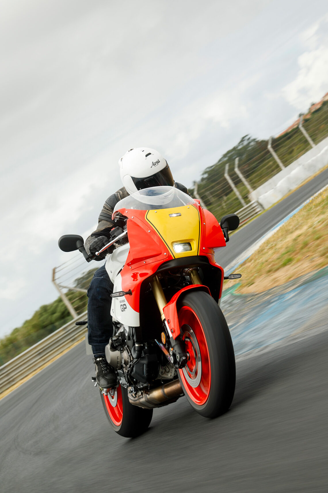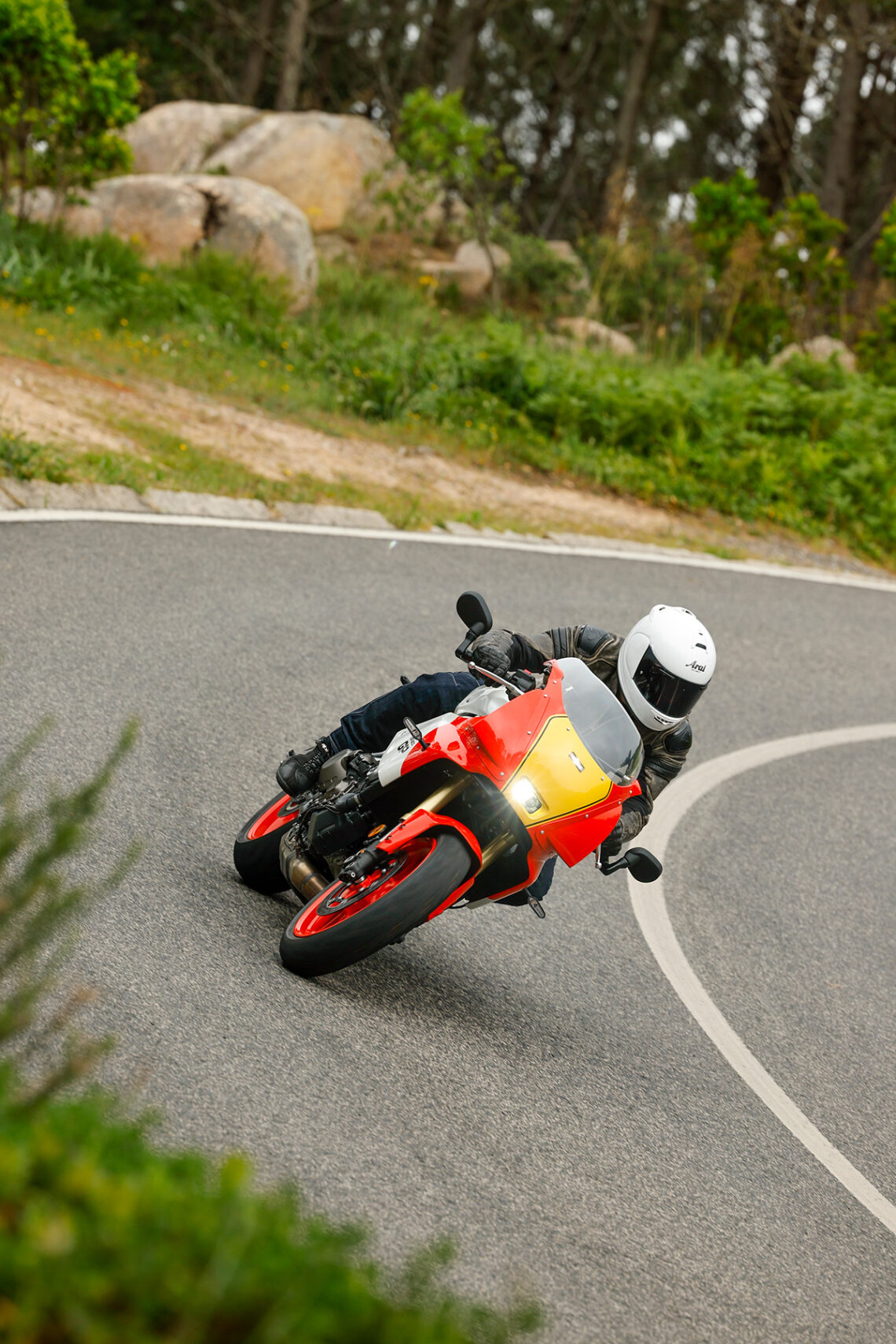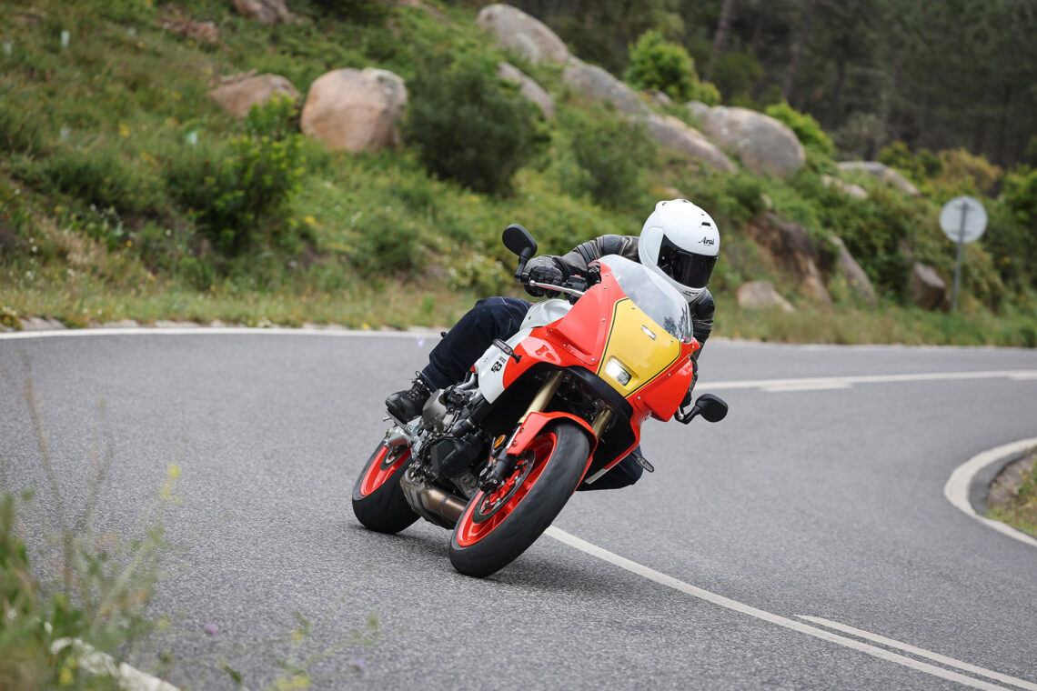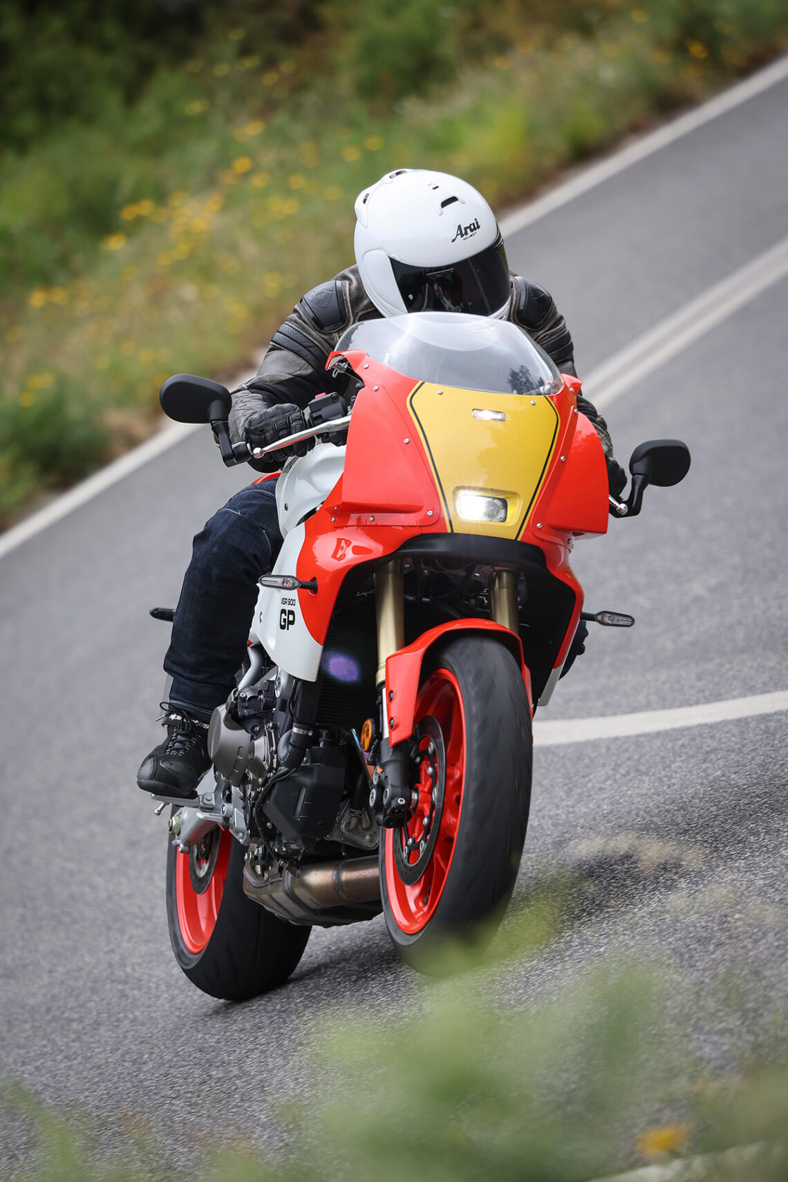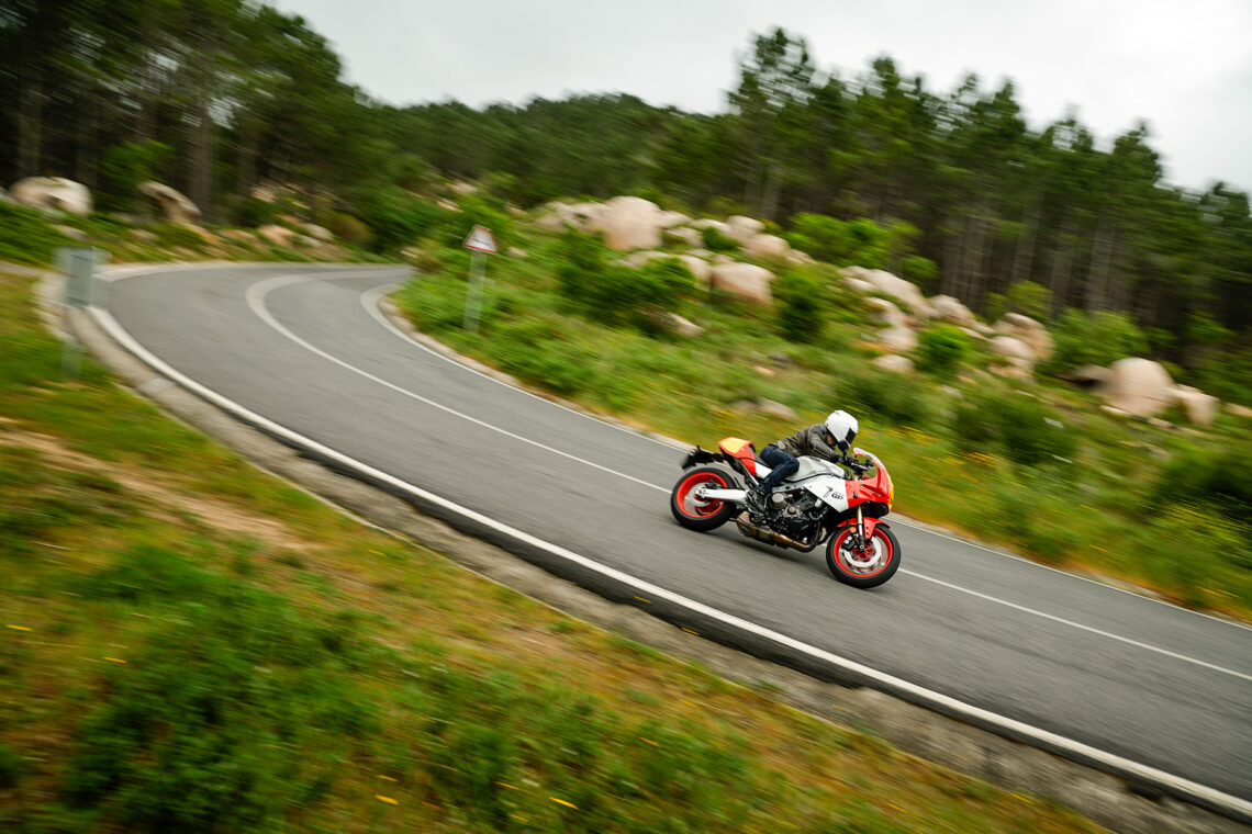 Si nos ponemos técnicos, hay que decir que la XSR900 GP es una moto más amiga de las curvas rápidas que lentas, llegando incluso a necesitar algo de palanca por parte de nuestro contra-manillar en las curvas cerradas y lentas, pero nada que no suceda con cualquier moto de semi-manillares si somos sinceros. Sin embargo las curvas medias y rápidas, es una tiralíneas. Le encanta tumbar, sentir la tracción y, no perder "guía" de delante. Es como una MT-09 que se conduce con la rueda delantera, a diferencia de lo que nos encontramos en dicho modelo, donde se conduce muy retraído.
