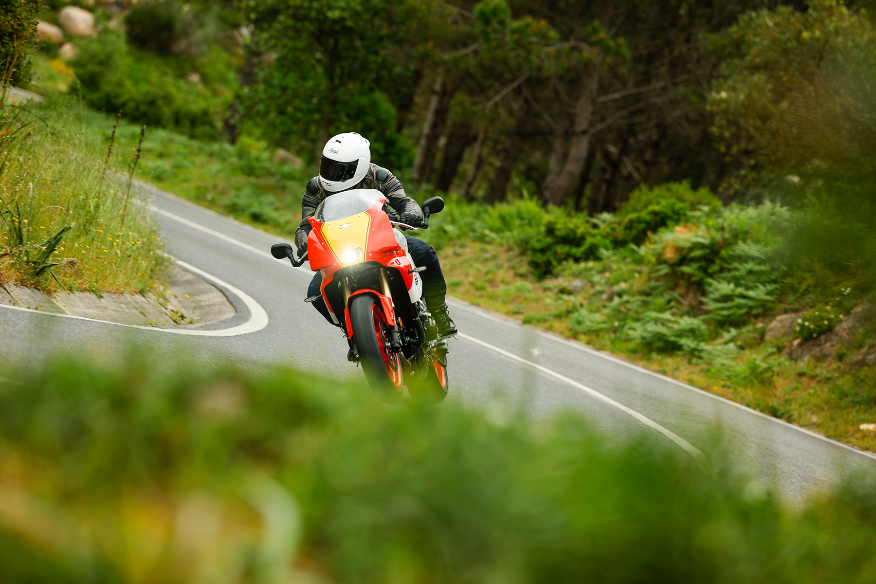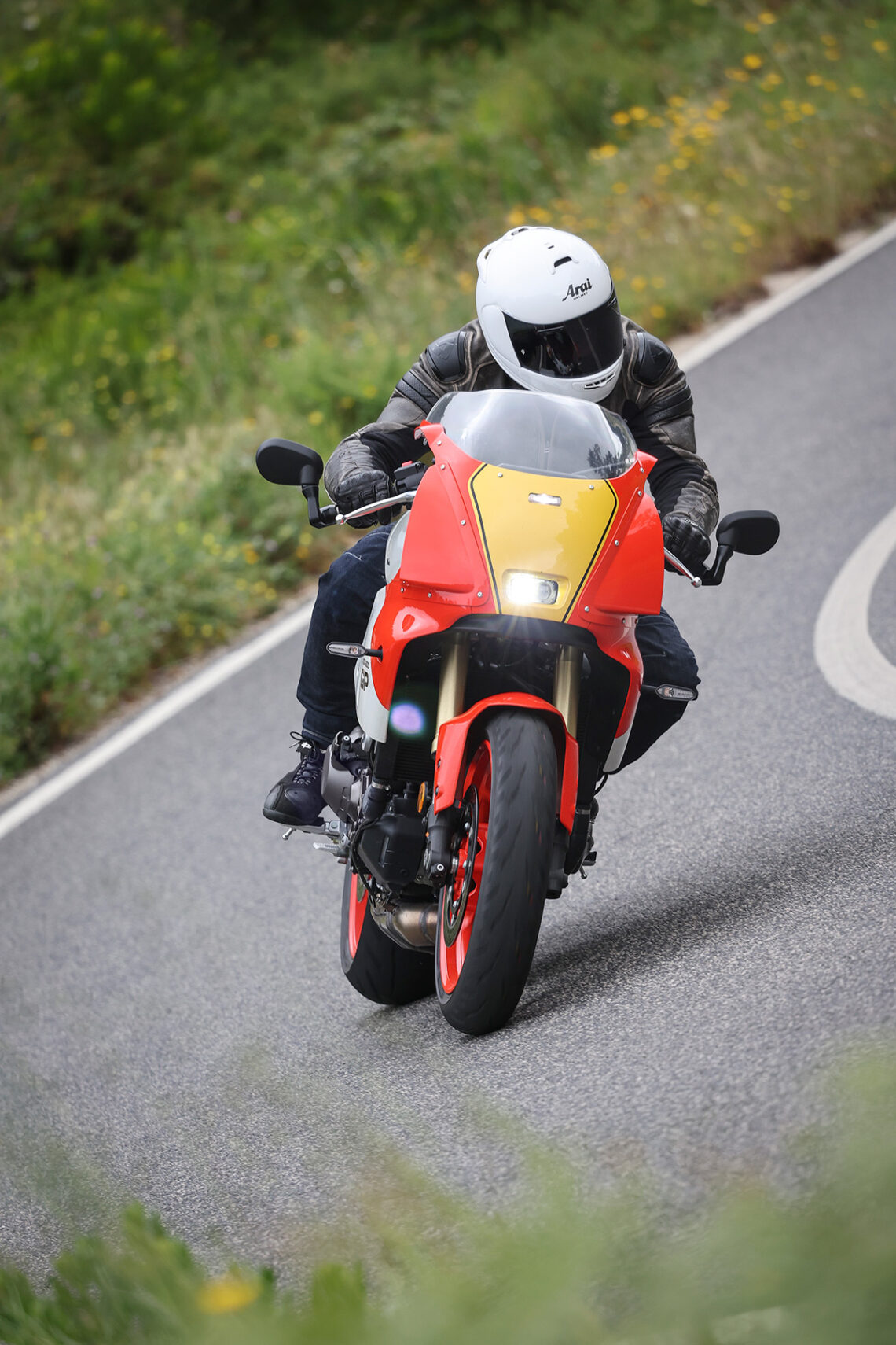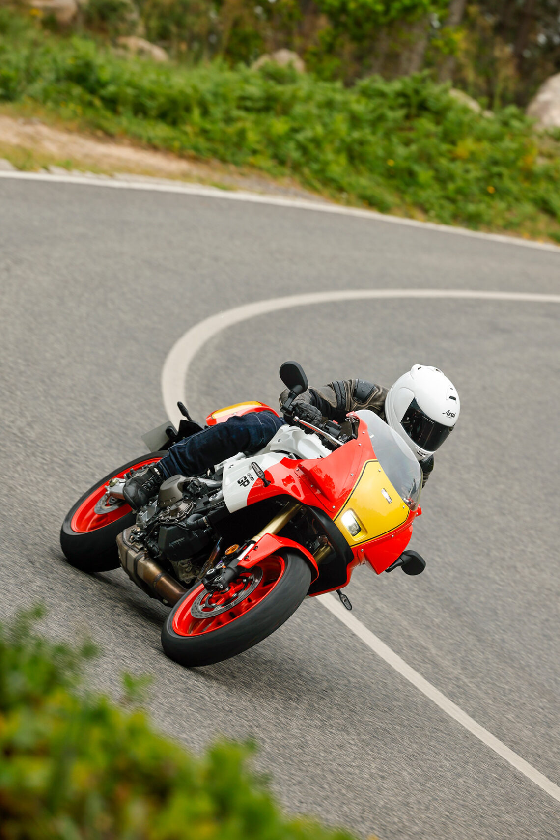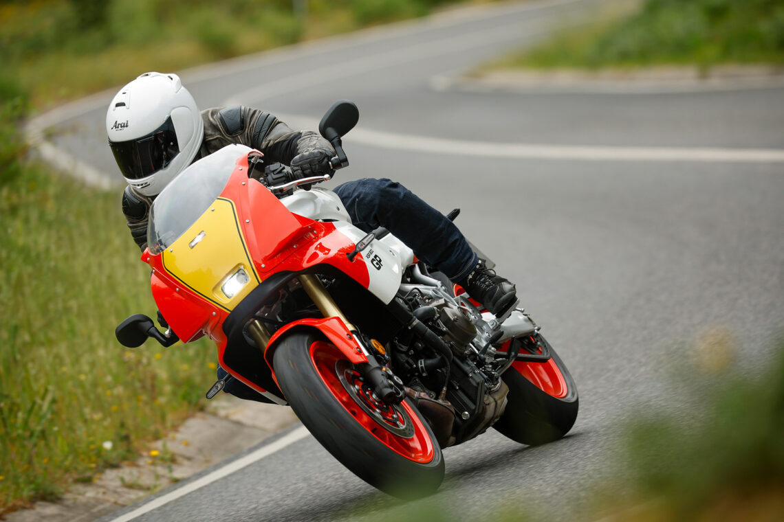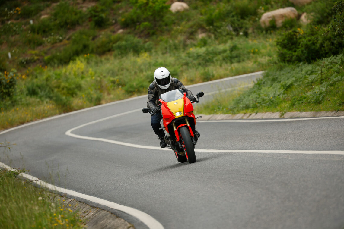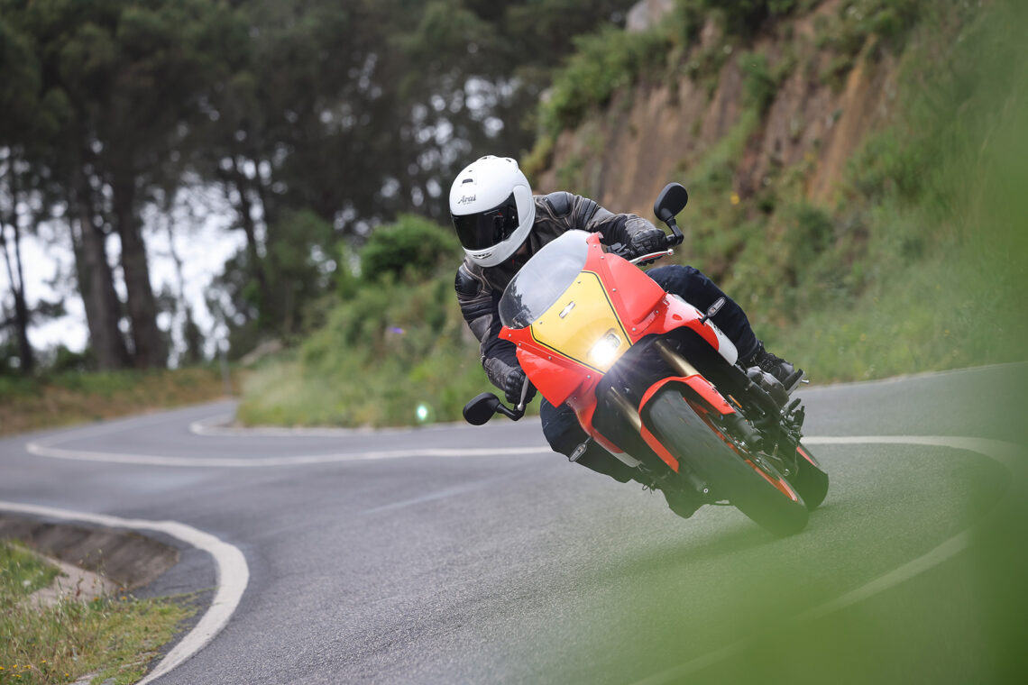 Si nos ponemos técnicos, hay que decir que la XSR900 GP es una moto más amiga de las curvas rápidas que lentas, llegando incluso a necesitar algo de palanca por parte de nuestro contra-manillar en las curvas cerradas y lentas, pero nada que no suceda con cualquier moto de semi-manillares si somos sinceros. Sin embargo las curvas medias y rápidas, es una tiralíneas. Le encanta tumbar, sentir la tracción y, no perder "guía" de delante. Es como una MT-09 que se conduce con la rueda delantera, a diferencia de lo que nos encontramos en dicho modelo, donde se conduce muy retraído.