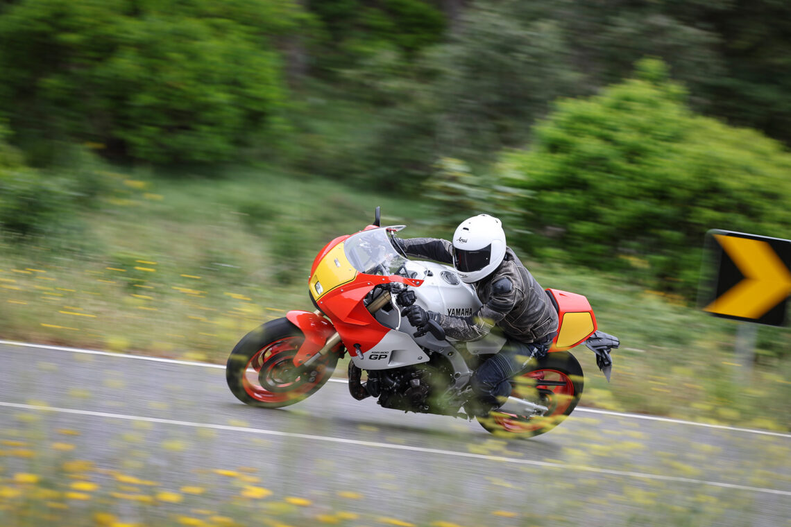 Nos subimos a la XSR900 GP y nos sorprende una ergonomía que, si bien no es excesivamente racing con manos bajas, si descubrimos una posición atacante al tren delantero y, algo larga. Me paro un momento y me vienen recuerdos de las FZR, GSXR y ZXR de los años 90. Motos largas, con largos depósitos de combustible. La sensación con esta XSR900 GP es muy similar. No es incómoda, pero ojo, la toma de mandos está lejos.